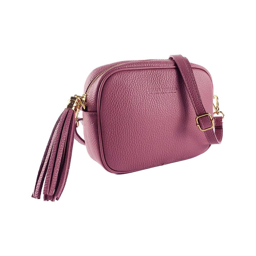 Sac à bandoulière luxueux fabriqué en Italie à partir de cuir de la plus haute qualité. Le cadeau idéal pour une personne spéciale. Comprend une bandoulière réglable et amovible avec mousquetons en métal doré, une poche ouverte à l'intérieur, des pompons en cuir, une fermeture éclair en métal doré poli et des accessoires. Rehaussez votre style avec ce sac à main élégant.